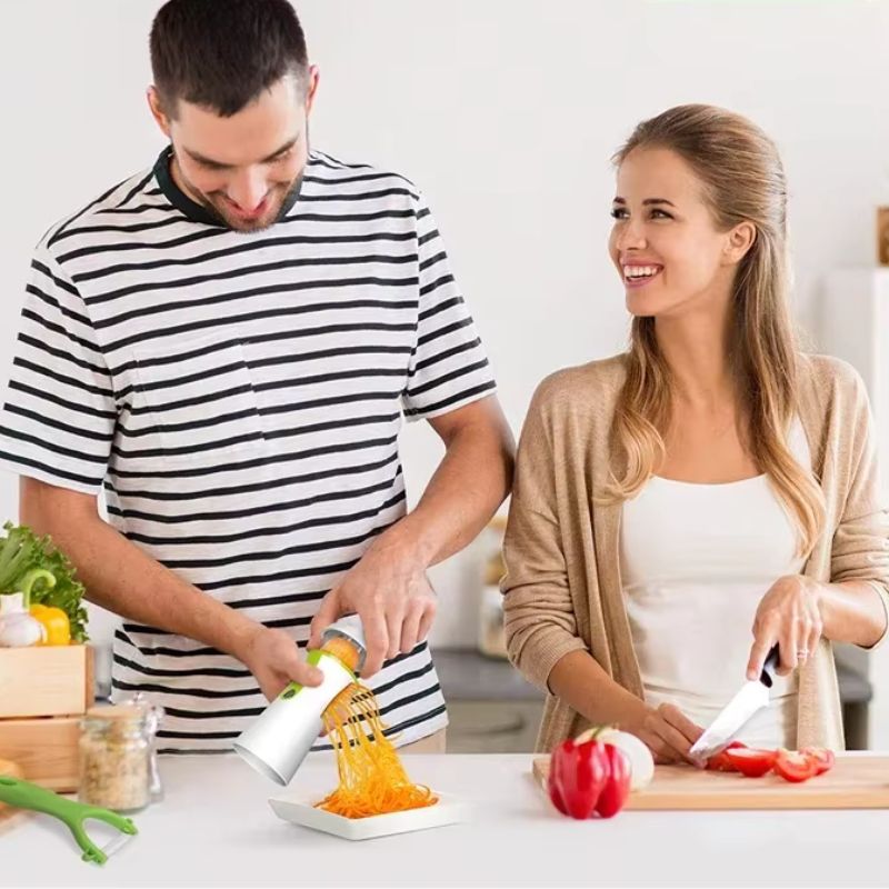 Cet outil ingénieux vous permet de créer des spirales parfaites en quelques secondes, sans effort. Il transforme vos légumes en julienne ou en spaghettis de manière fluide et rapide, pour des plats aussi beaux que savoureux.