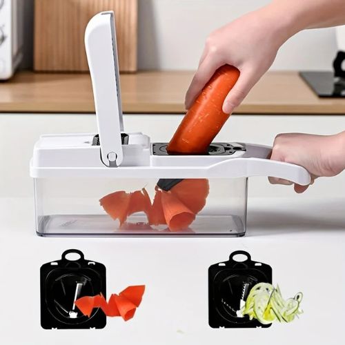Marre de passer des heures à couper, hacher, trancher ? Ce coupe-légumes multifonction est bien plus qu’un simple ustensile… C’est un véritable allié en cuisine, conçu pour simplifier votre quotidien et vous offrir plus de moments précieux à partager, savourer et aimer.